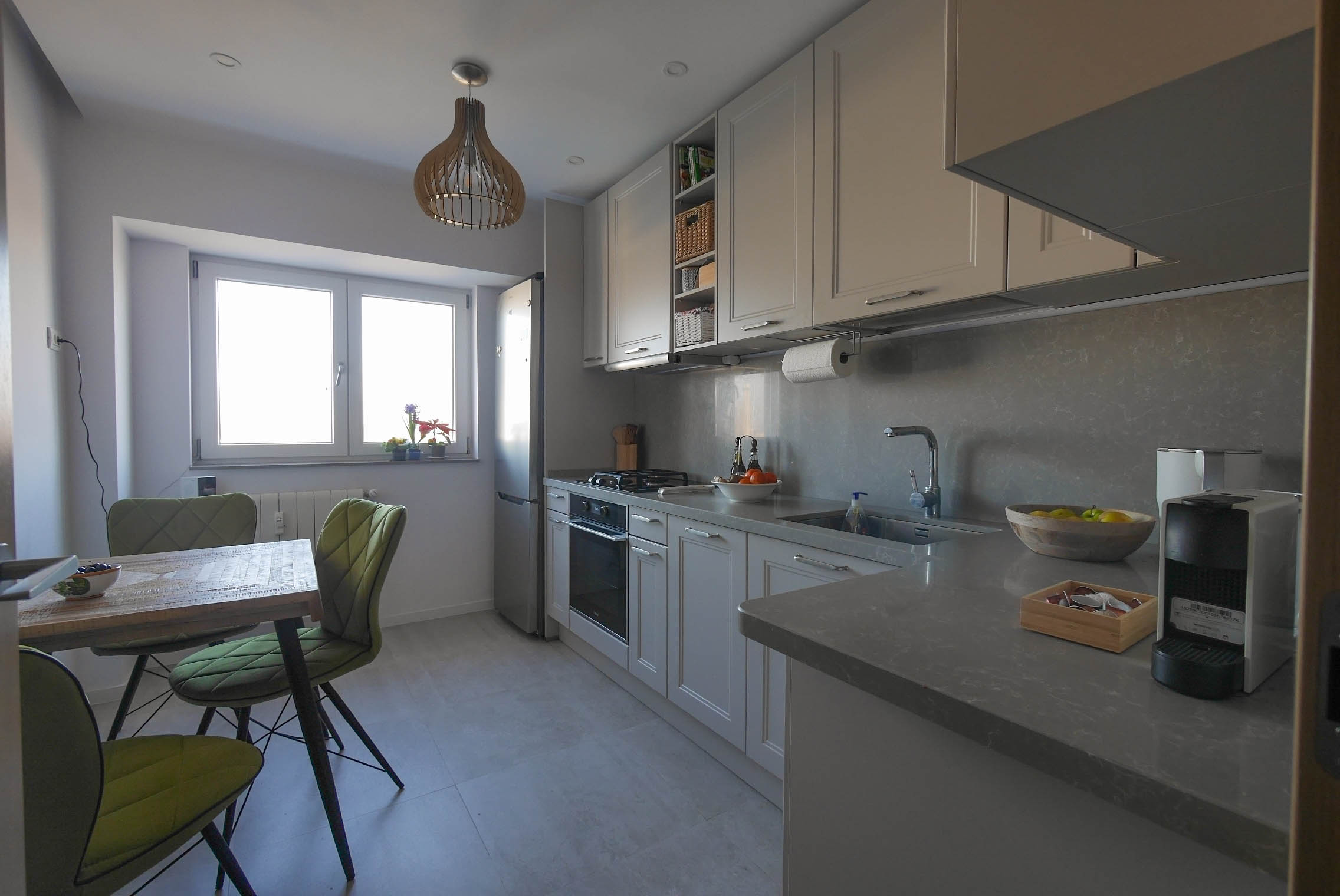 Lumina este utilizată pentru a sculpta ambianța, generând zone de penumbră care pun în valoare spațiile vizual extinse. Vegetația este integrată atât în balcon, cât și lângă ferestrele interioare, aducând natura mai aproape și completând peisajul interior al fiecărei camere. Această legătură cu exteriorul creează o atmosferă relaxantă și reconfortantă. - Utilizarea de materiale nobile, naturale și ecologice