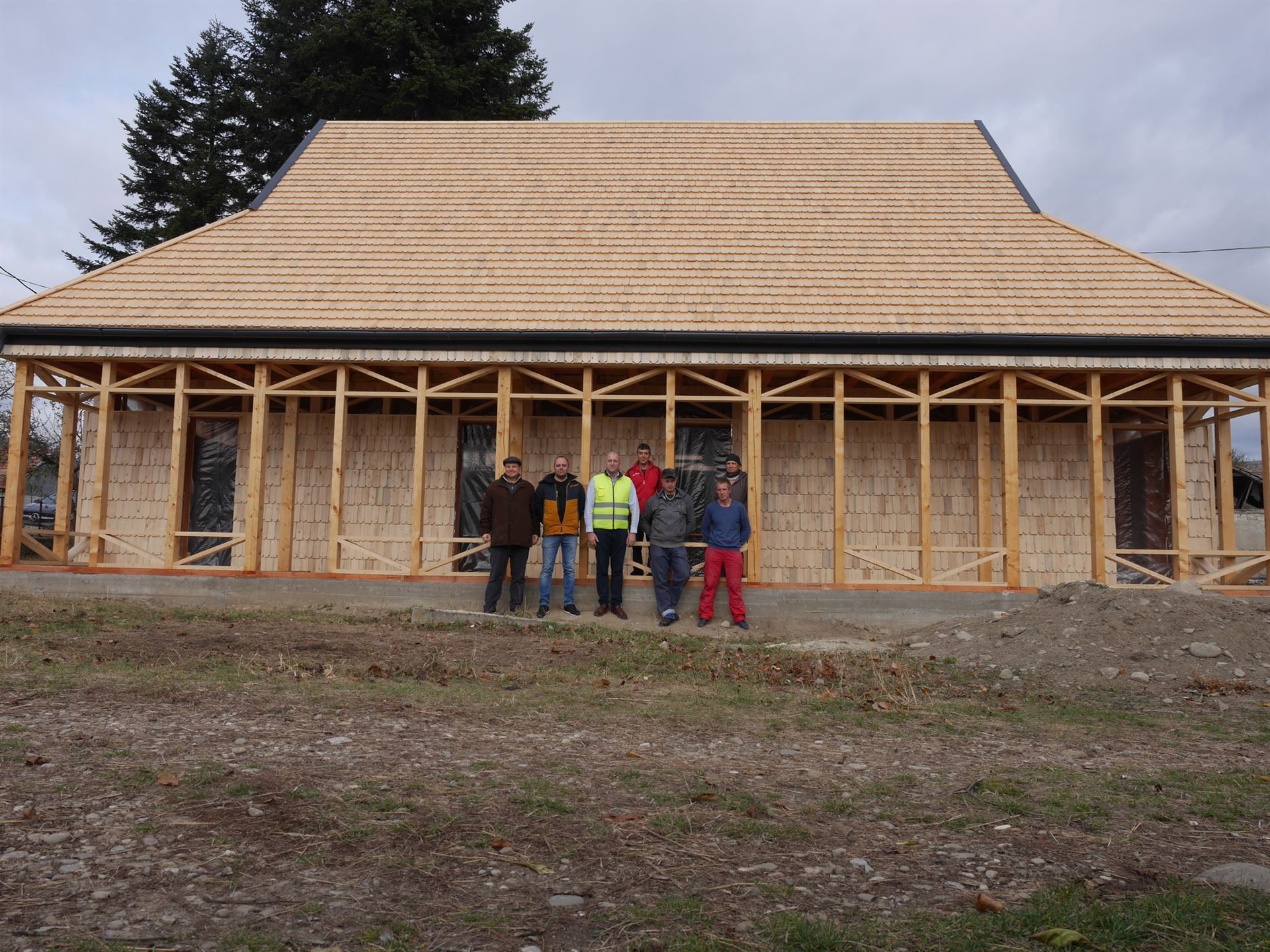 Este important să menționăm că fundațiile au fost realizate cu pricepere de către domnul Drăgulin și echipa sa, iar lucrările de lemn au fost îndeplinite sub îndrumarea atentă a domnului Lukacs și a echipei lui. Contribuția lor esențială la acest proiect a asigurat soliditatea și exteriorul construcției, și, în plus, a adăugat o notă care onorează tradițiile locale ale lemnului și care se reflectă în anvelopanta și detaliile constructive, creionate de către studenții Facultății de Arhitectură UAUIM încă din timpul Școlii de Vară Arhipera, ediția a XI-a. Cu recunoștință către toți acești colaboratori dedicați, ne îndreptăm cu optimism spre etapele următoare ale finalizării proiectului Centrului Comunitar din Chiojdu.